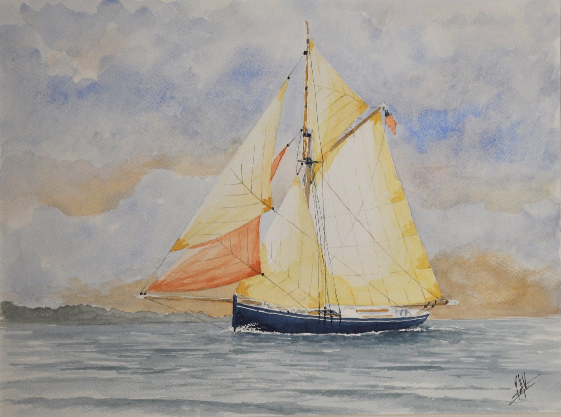 "Côtre Pilot au Petit Matin" – Aquarelle originale par Jean-Christophe Lucas